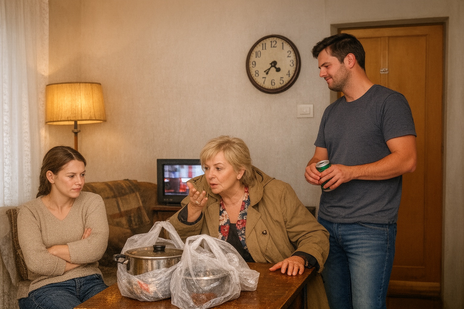 — Na, gyermekeim! — jelentette ki, kabátját le sem véve, miközben máris lehuppant a konyhaasztalhoz. — Hát… mondjuk úgy… meghitt kis fészek. De hol a tévé? Én nagyobb képernyőhöz vagyok szokva.