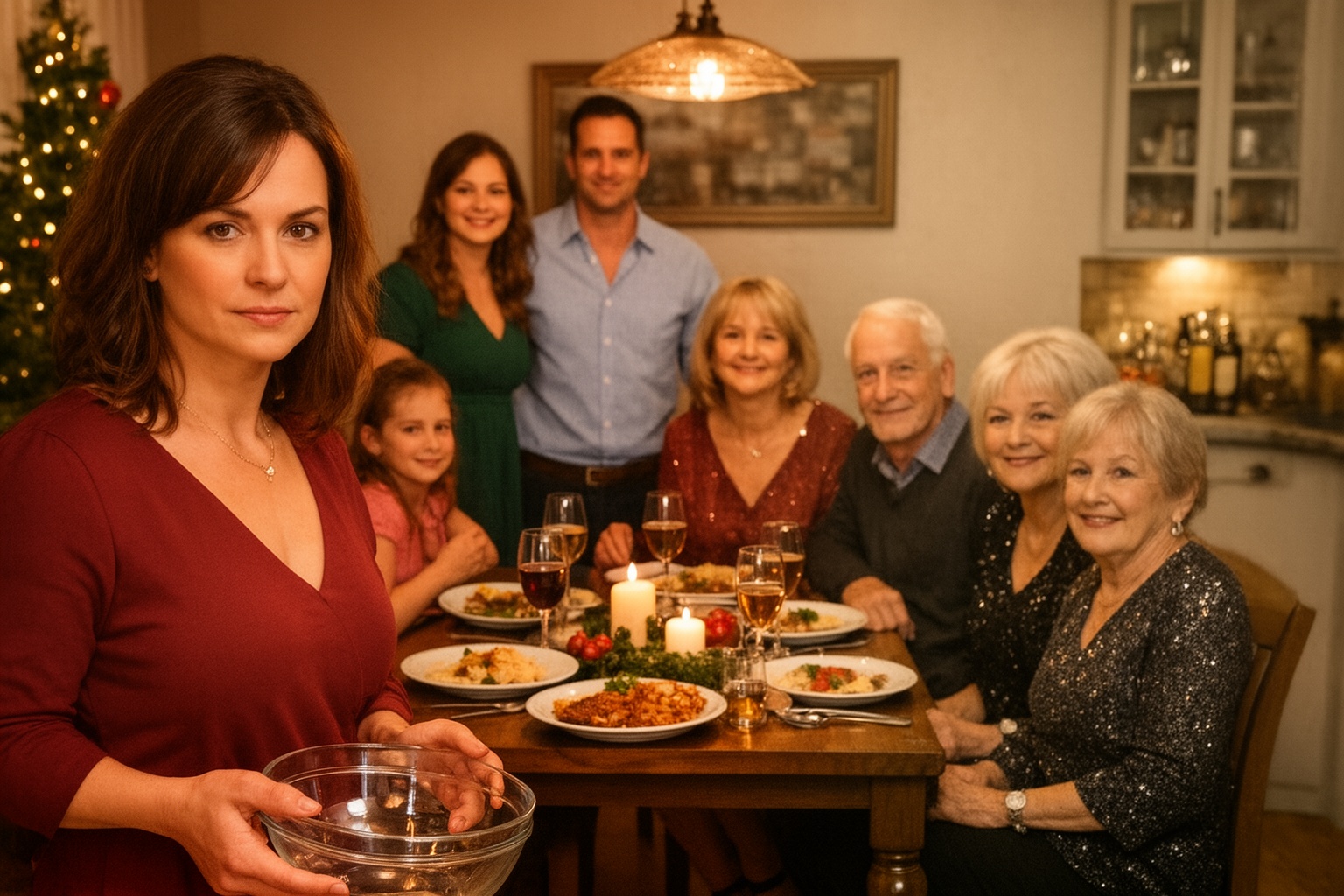 Hét órára érkeztek az első vendégek. Felvettem az új ruhámat — sötétkék, visszafogott, elegáns. Tudtam, hogy az anyósom nem kedveli a kihívó öltözéket. Gábor odalépett, átkarolta a derekamat.