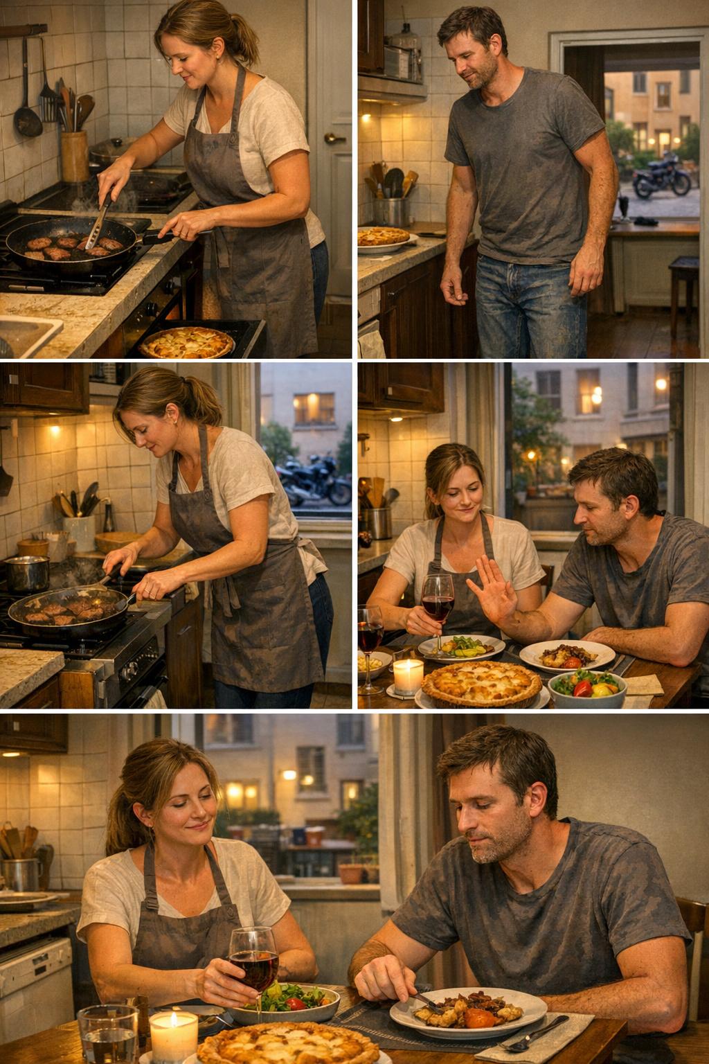 Lilla megfordította a sercegve piruló hússzeleteket, majd fedőt tett a serpenyőre. A nyitott ablakon át motorzúgás és a kerekek halk surrogása hallatszott az udvar felől. Márk megérkezett – és ő még nem végzett a vacsorával. Gyorsan ellenőrizte a sütőben sülő almás pitét, aztán elővette a hűtőből a zöldségeket, és a csap alá tartotta őket.