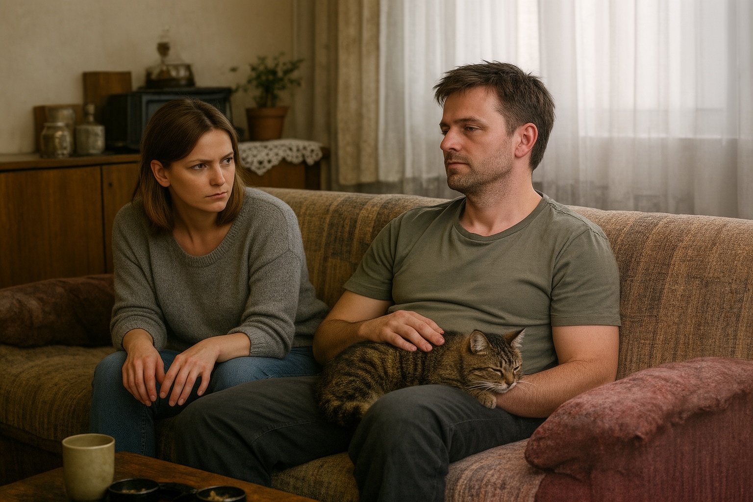 A kopott kanapén ültek egymás mellett. Márk öntudatlan mozdulatokkal simogatta a macskát, tekintete elrévedt, mintha teljesen máshol járna gondolatban.