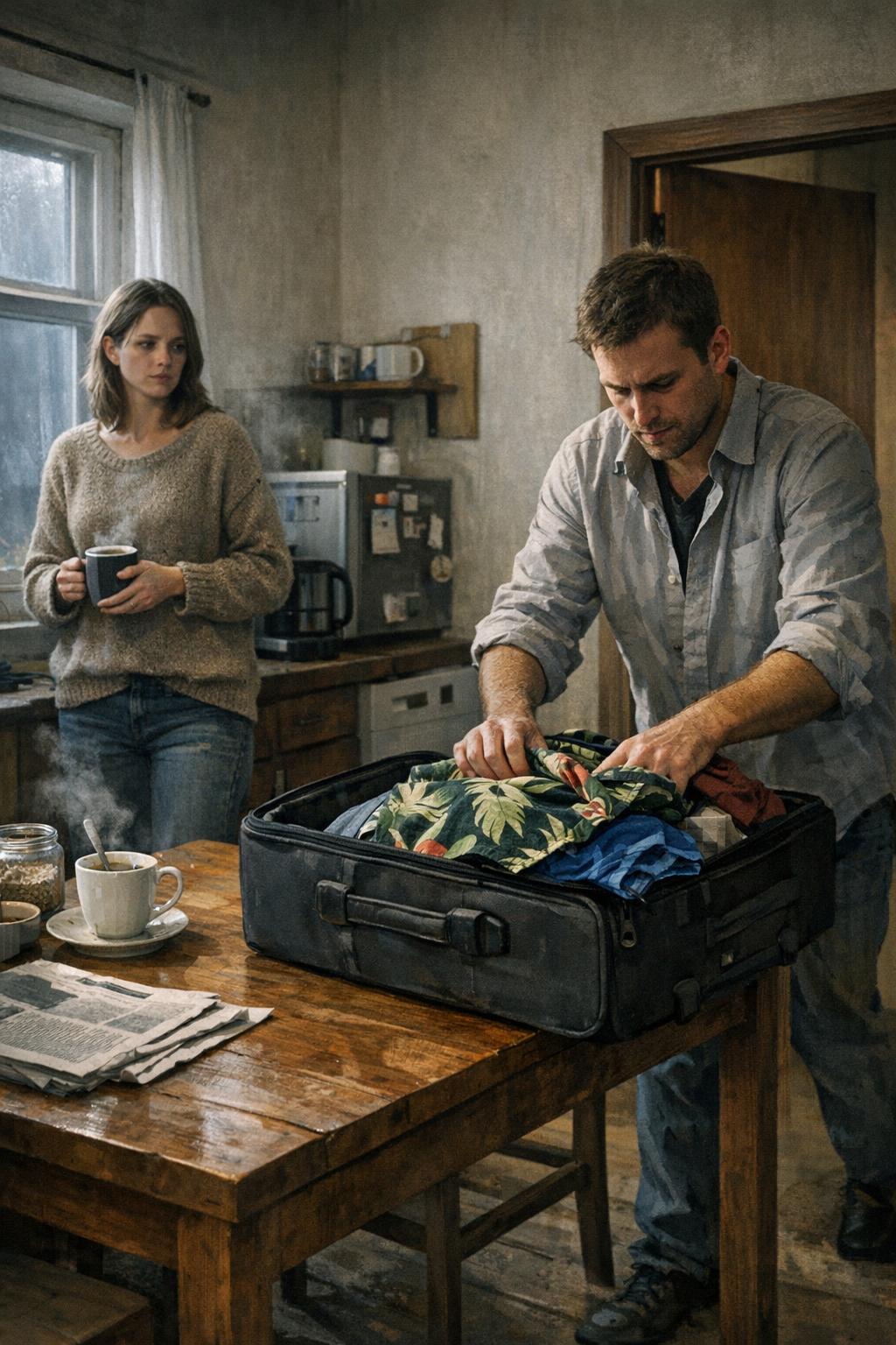 Felállt, a szekrényhez lépett, és bőröndbe kezdte hajigálni a ruháit. Megakadt a szemem egy rikító, nagyleveles mintájú ingen – sosem hordott ilyesmit. A csomagba fürdőnadrág is került, amit korábban nem láttam.