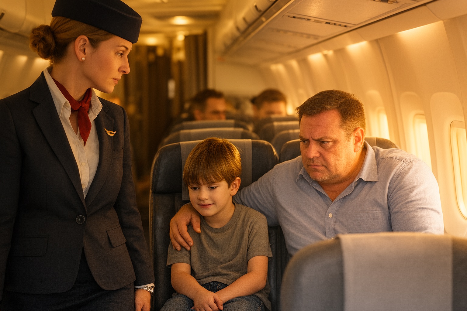 Néhány perccel később ismét a fiú felé nézett. A gyermek tekintetében valami nyugtalanítót fedezett fel: nem csupán félelmet, hanem kétségbeesett, néma segélykérést. Amikor a mellette ülő férfi – aki korábban apjaként mutatkozott be – felállt, hogy a mosdóba menjen, a fiú újra végrehajtotta ugyanazt a kézjelet. Ezúttal határozottabban, sürgetőbben. A szemeiben tiszta rettegés tükröződött.