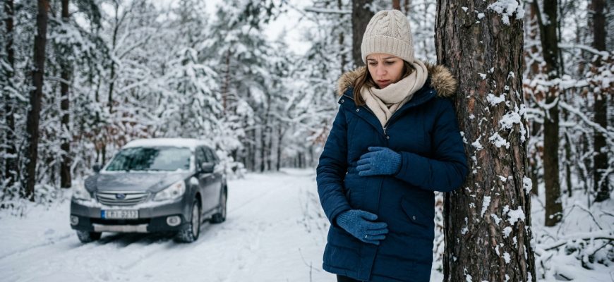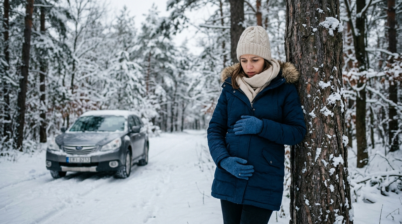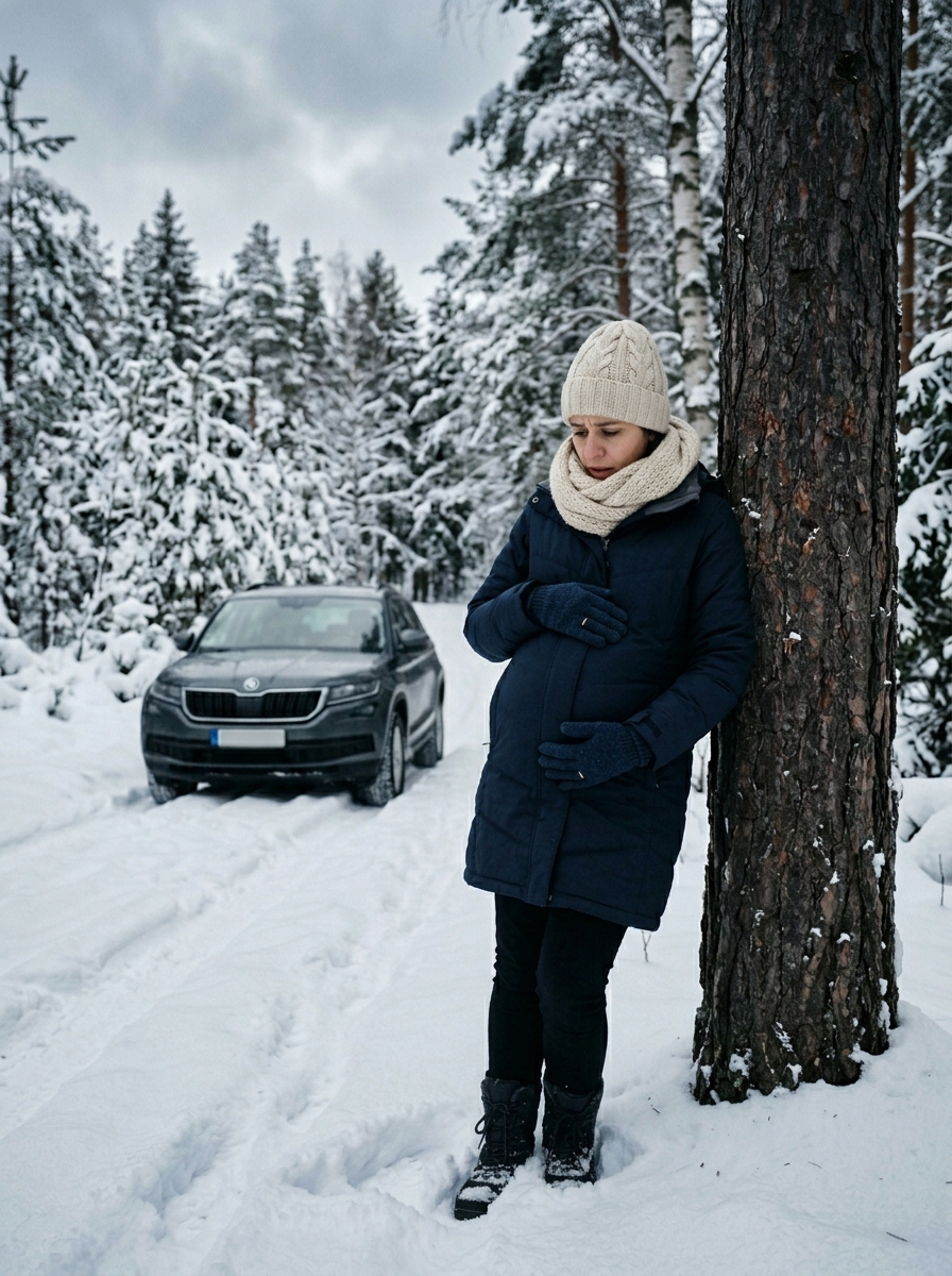 Tisztában volt vele, hogy ha a kocsiban marad, megfagyhat. A telefonján nem volt térerő. Végső elkeseredésében kiszállt a dermesztő szélbe, abban bízva, hogy talán arra téved valaki, vagy a mentők rátalálnak. Az erdei út azonban teljesen kihalt volt. Alig állt a lábán, hasa görcsölt, a benne növekvő kisbaba nyugtalanul mozgott.
