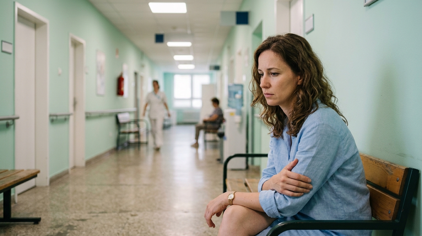 Felnéztem az intenzív osztály ajtajára. Zárva volt. Odabent feküdt a férjem — cső a torkában, infúzió a karjában, eszméletlenül. Három órával korábban ezt közölte velem a kék lábzsákos idegsebész, anélkül hogy a szemembe nézett volna: „Súlyos az állapota. Stabilan súlyos. Várakozni kell.”