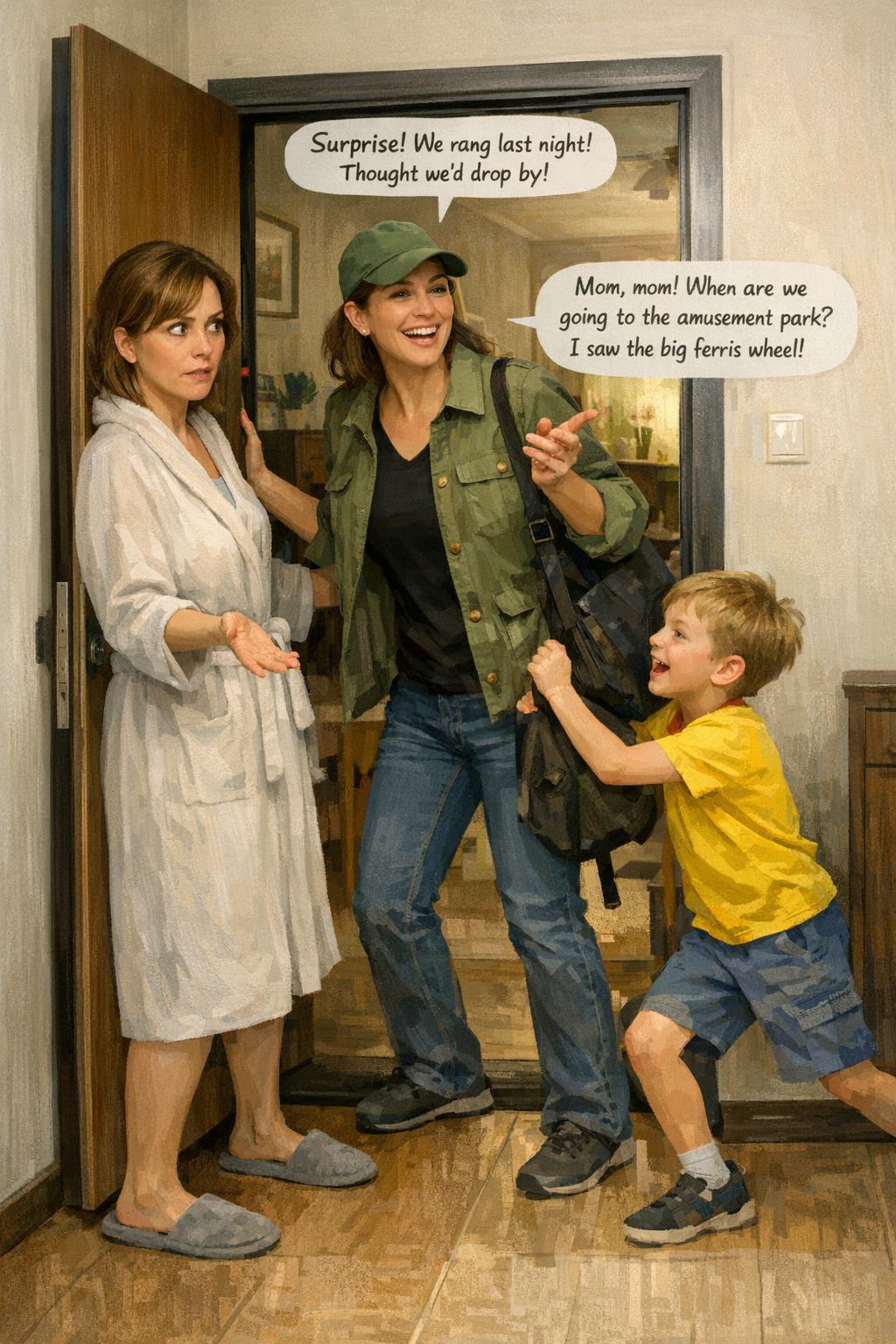 – Meglepetés! – vigyorgott a sógornő. – Csak nem az ajtóban akarsz tartani? Beengednél végre?