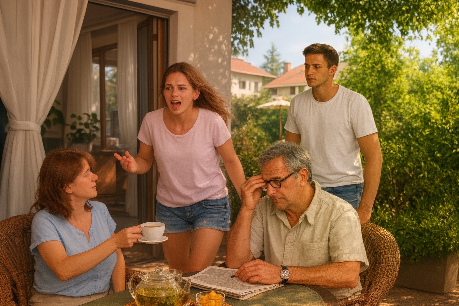 Az apja lassan összehajtotta az újságot, amelyet a kedvenc fonott székében olvasott. Levette a szemüvegét, és megdörzsölte a szemét. Az anyja közben teát töltött a csészékbe.