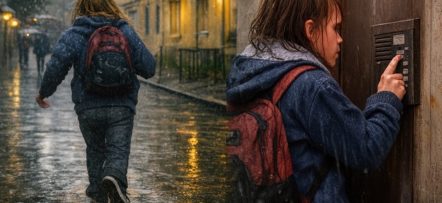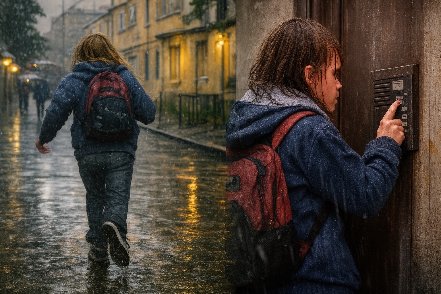 A kislány fejvesztve rohant haza. Időközben szemerkélni kezdett az eső, amely hamarosan zuhogássá erősödött, de eszébe sem jutott elővenni az esernyőjét. Tíz perc múlva csuromvizesen, remegő kézzel nyomta újra és újra a csengőt.