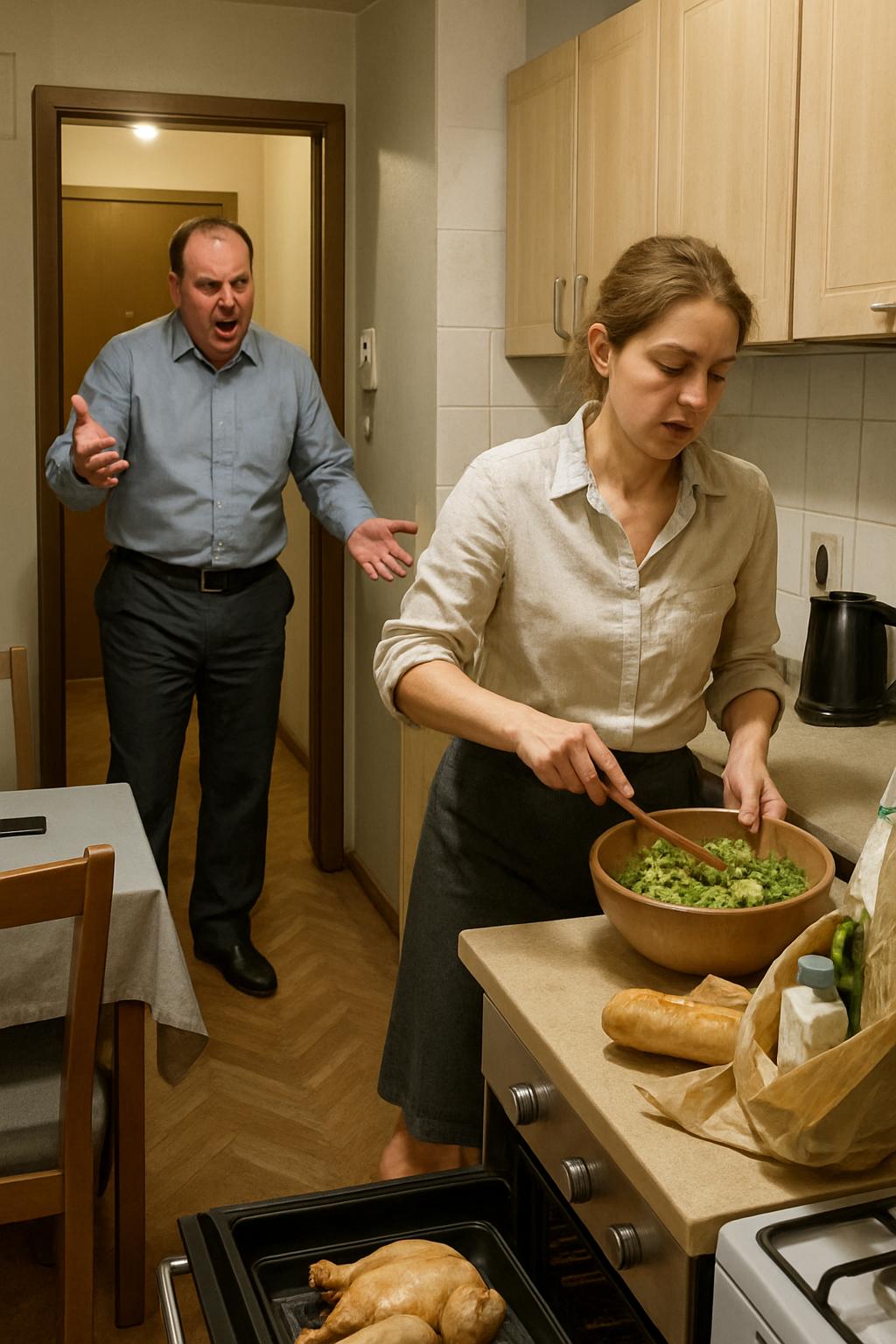 A férje elindult, ő pedig munkához látott: berakta a csirkét a sütőbe, készített egy nagy tál salátát, majd rendet rakott a lakásban. Mire az anyósa megérkezett, mindennel végzett.