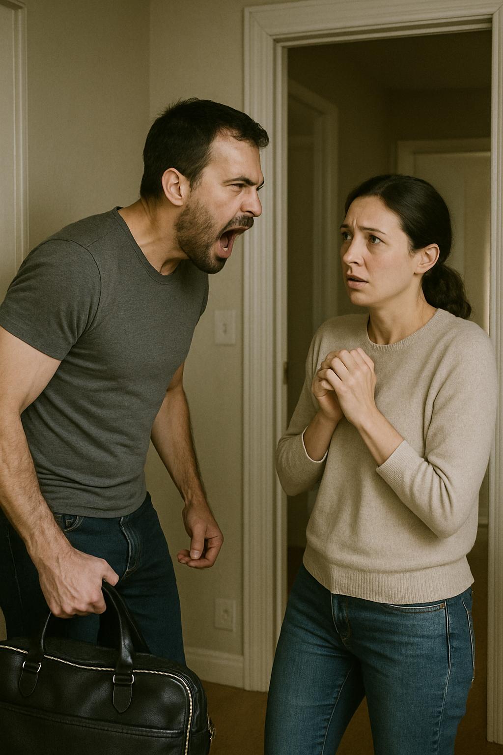 A férje rosszkedvű képpel kiballagott a szobából.