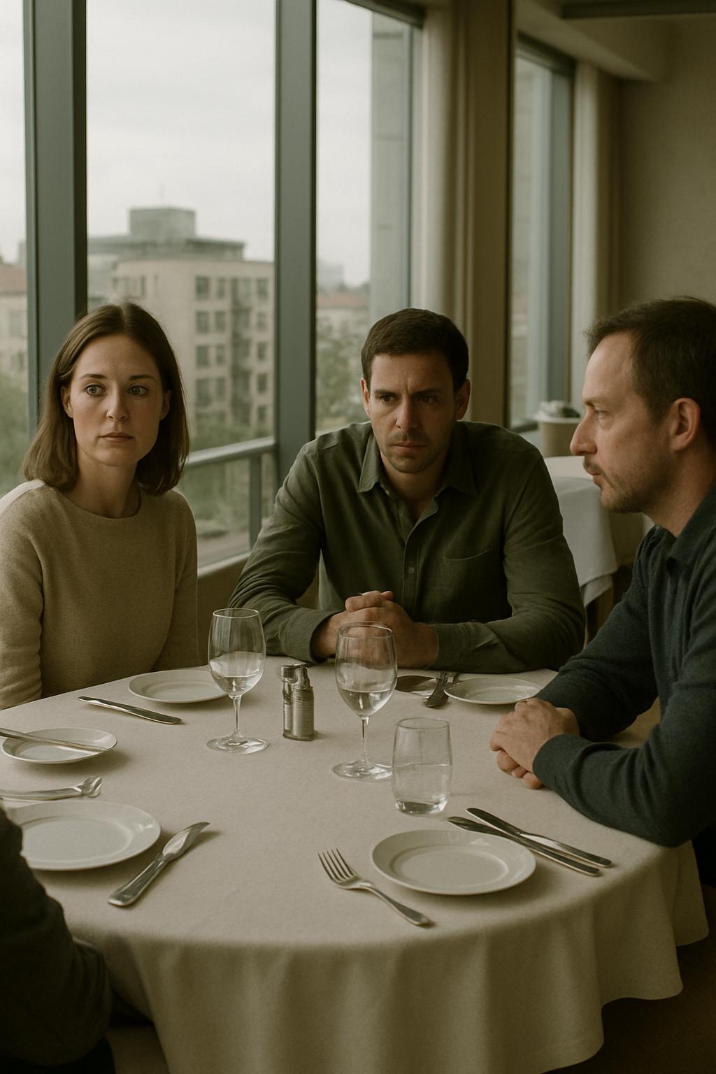 Az étterem azok közé tartozott, ahol az étlapon nincsenek árak. Orsolya Domonkos nyomában haladt, érezte, ahogy az idegen ruha szorítja a vállát, a cipő pedig kényelmetlenül vágja a lábát — a szomszédtól kérte kölcsön. Az asztalnál ketten ültek: egy testes férfi nehéz pillákkal, valamint egy ügyvéd aktatáskával. Domonkos hanyag mozdulattal mutatta be:
