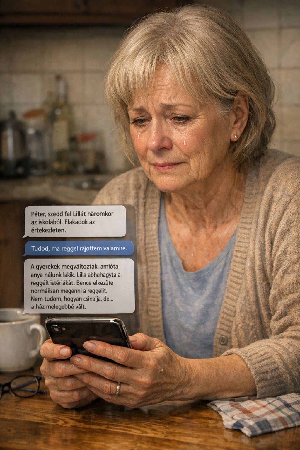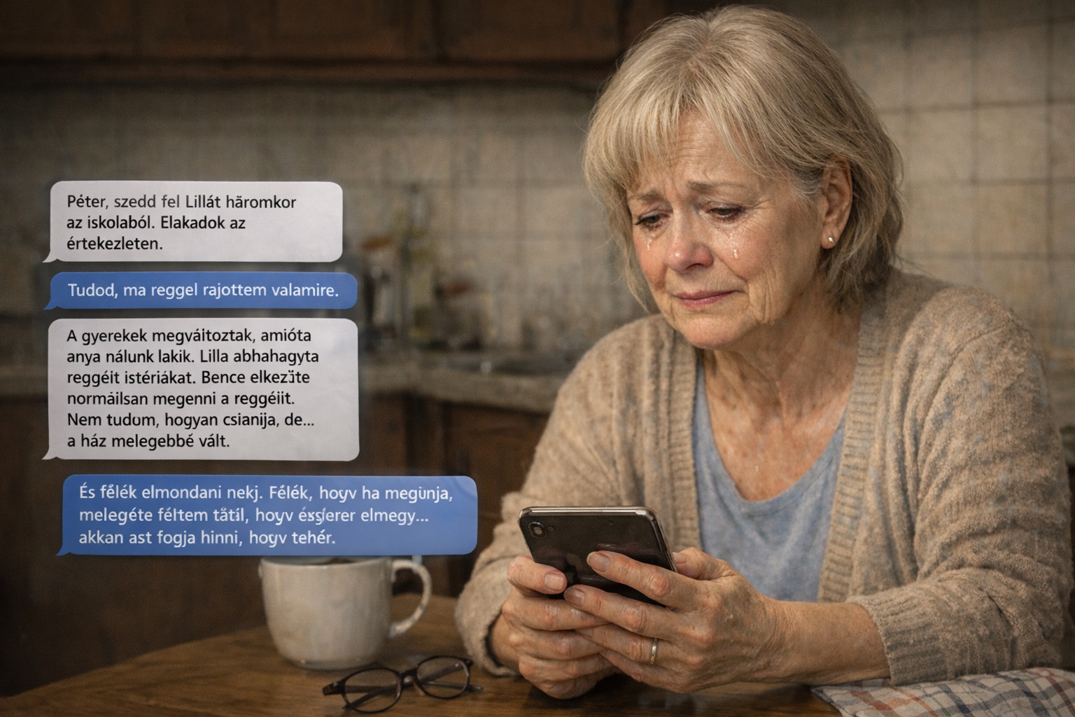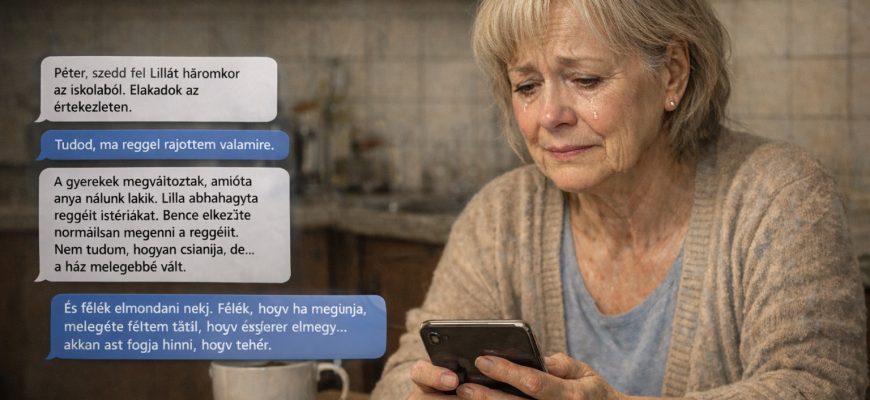 Margit letette a telefont az asztalra. Tudta, hogy ezt nem neki szánták. Tudta, hogy Eszter Péternek, a férjének akarta írni. De most ez itt volt, a képernyőn, és Margit nem tudta eldönteni: mit érez.