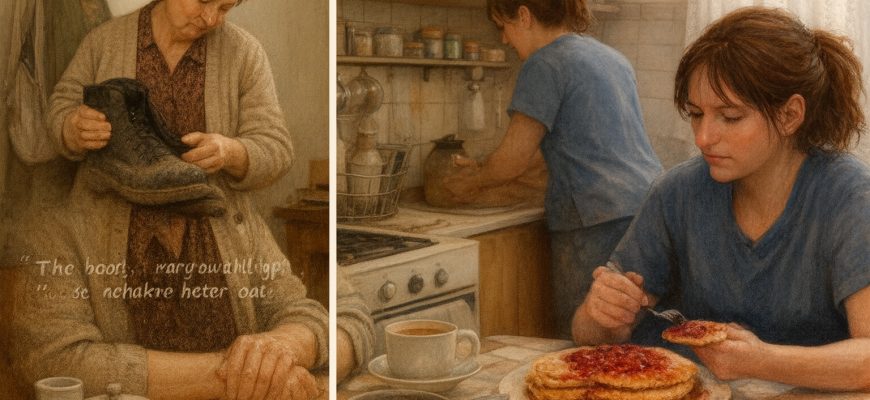 Most jóízűen falatozta a málnalekváros palacsintát, miközben a nagymamája alaposan szemügyre vette a csizmáját.